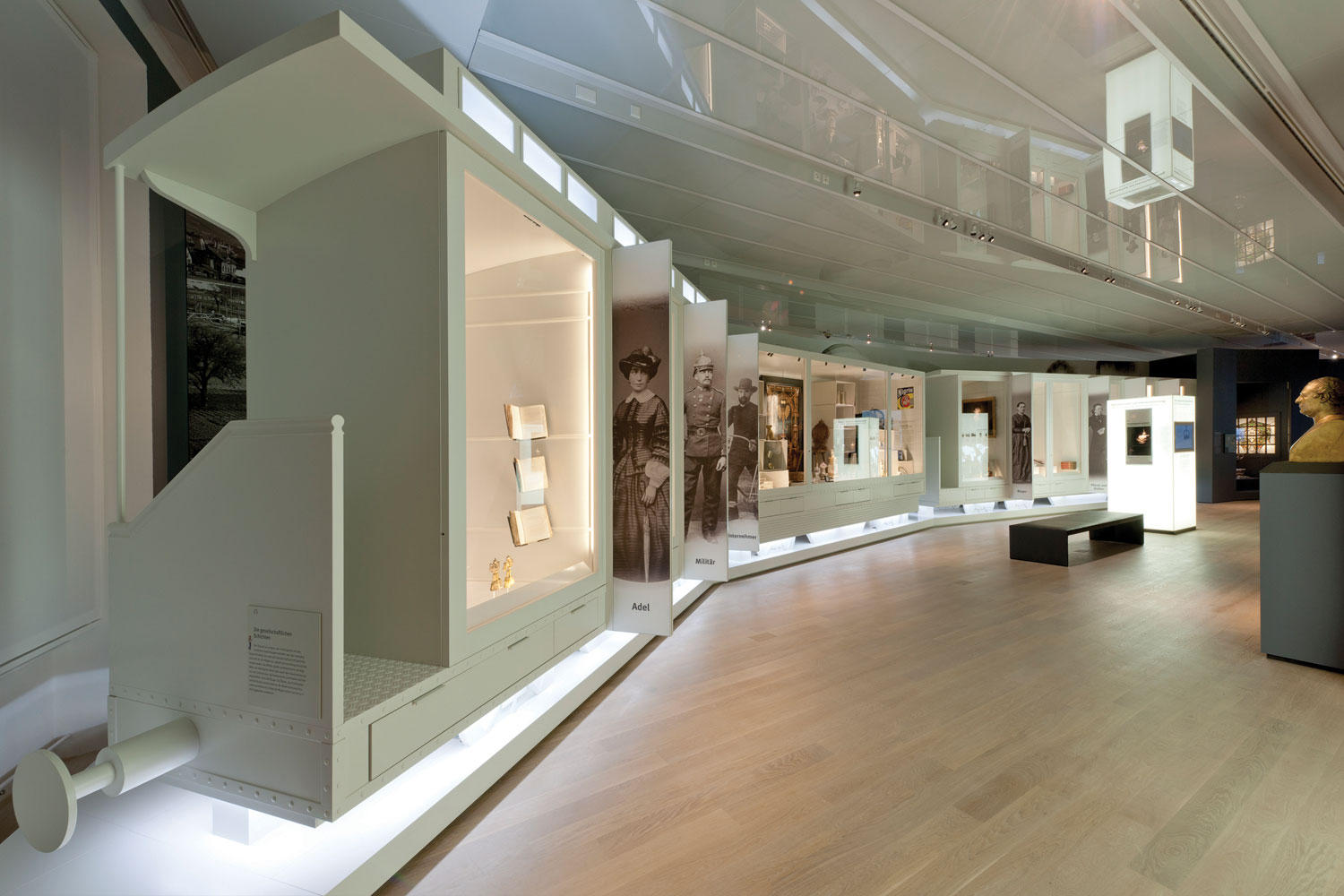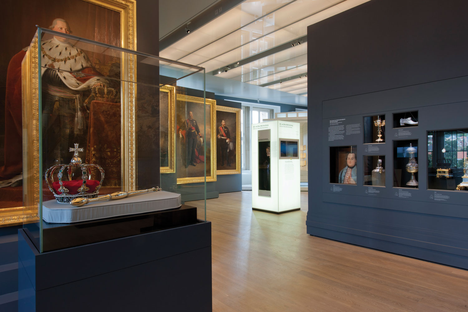 Insgesamt erlebt der Besucher so sieben Epochen, deren Letzte am Anfang des 20. Jahrhunderts mit dem Ende des Königreich Württembergs schließt. Von dort gibt es einen, wiederum medial dargestellten Ausblick in Gegenwart und Zukunft, der verdeutlicht, dass mit der „Erzählung“ der Ausstellung, nicht die Geschichte endet, sondern dass diese jeden Tag weitergeführt wird. Hauptattraktion dieses Parcours sind und bleiben, wie es im Museum sein soll, die Objekte. Sie sind durch aufwändige Montagen in einem eigens entwickelten Vitrinensystem geradezu magisch präsentiert und scheinen vor den Augen der Besucher in den Vitrinen zu schweben. Eine neu entwickelte Kinderebene begleitet die kleinen Museumsbesucher durch die gesamte Ausstellung.