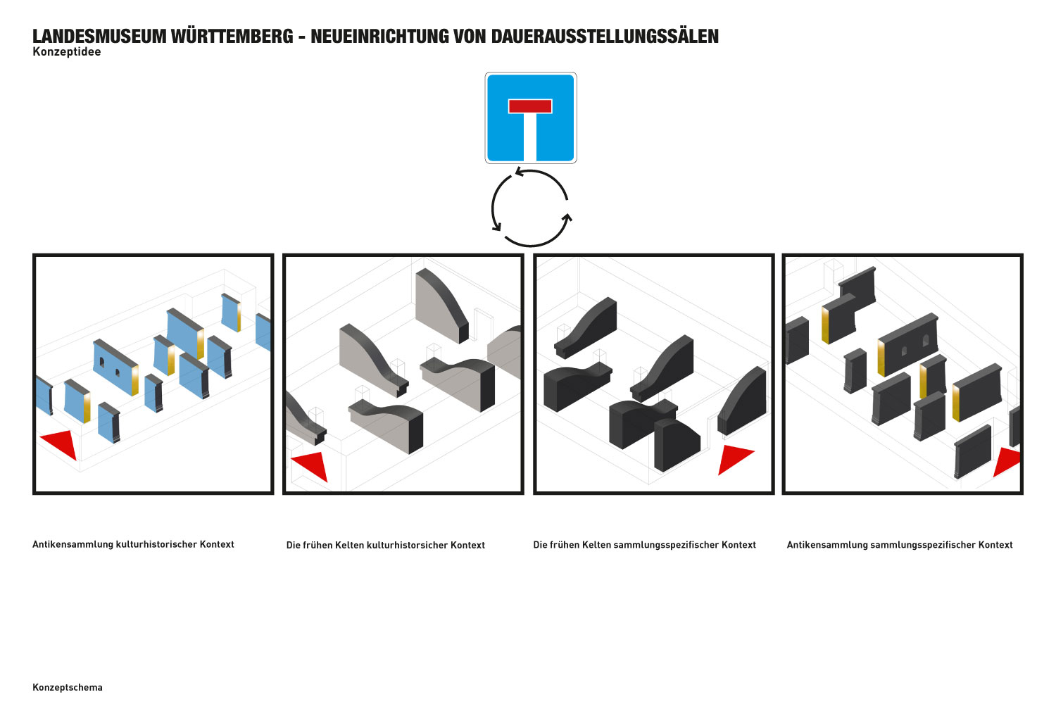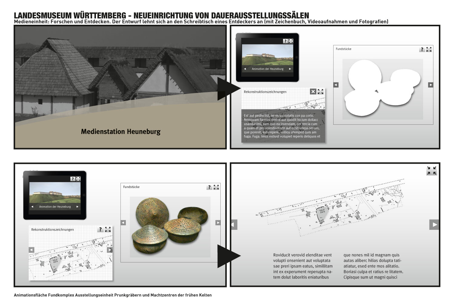 Nicht immer hat man das Glück, dass die Entwürfe, von denen man am meisten überzeugt ist auch realisiert werden dürfen. Der Entwurf für die Highlightsammlungen der Antike, der Herzöglichen Wunderkammer und der frühen Kelten gehört sicherlich dazu.