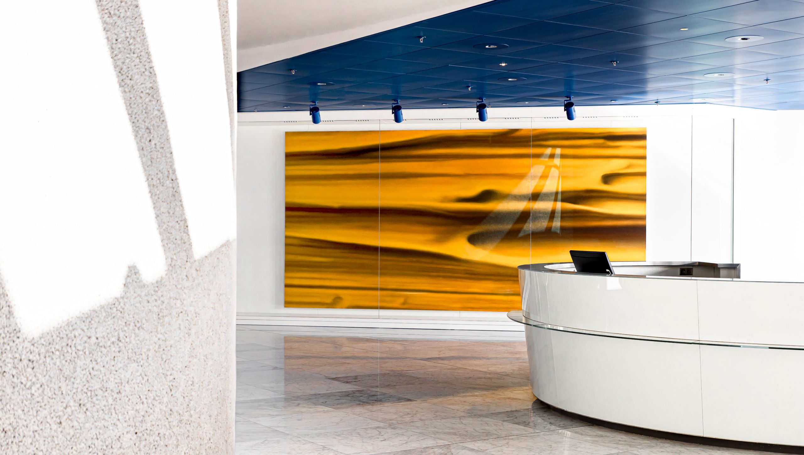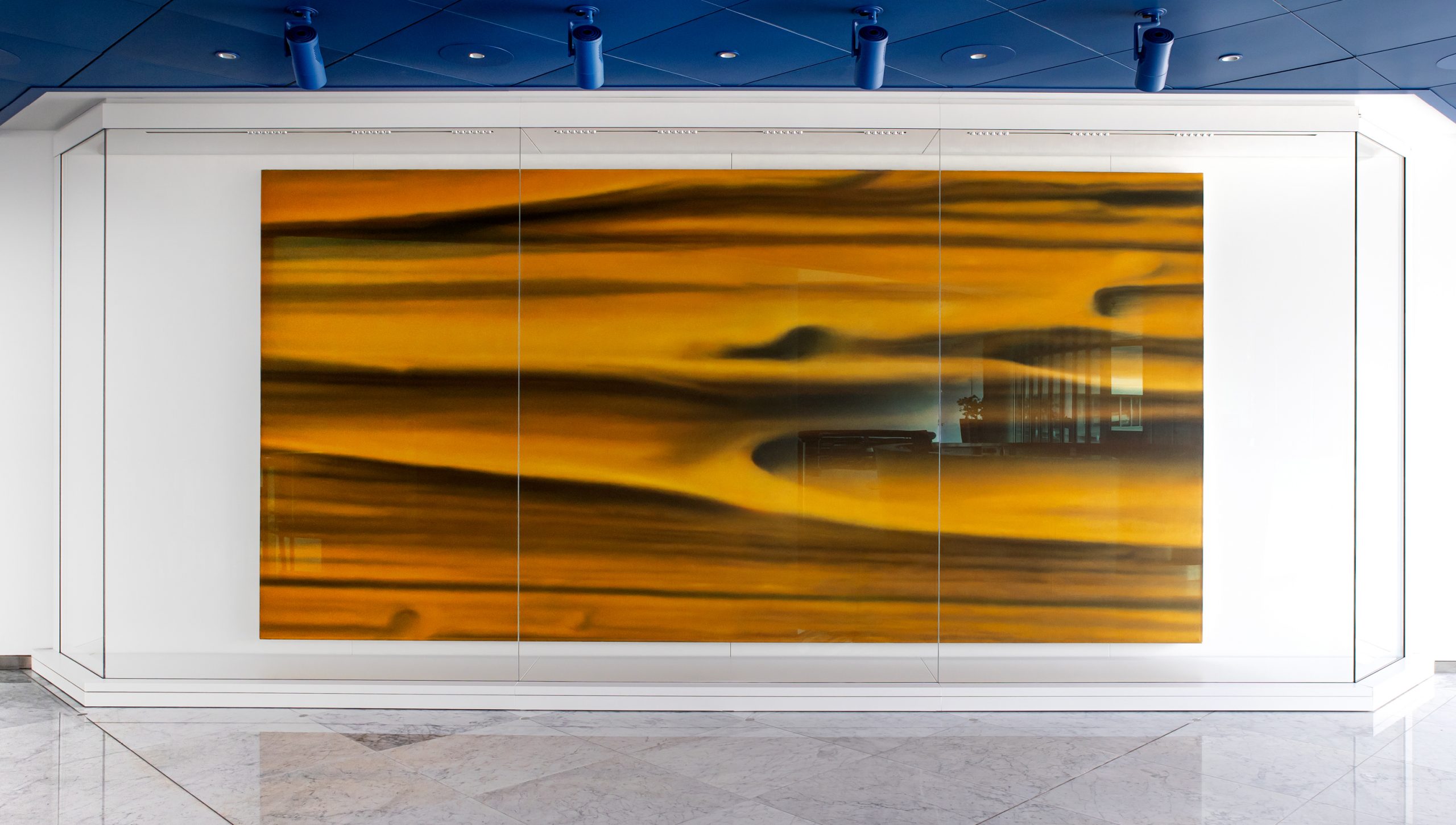 Gerhard Richter, einer der bedeutendsten Maler der Gegenwart, hat einen nachhaltigen Einfluss auf die Kunstwelt ausgeübt. Seine Werkgruppe „Rot – Gelb – Blau“ ist eine faszinierende Reihe von Gemälden, in Monumentalformat vergrößerte Pinselstriche, die Farbe und Form auf harmonische und doch herausfordernde Weise kombinieren. Seit 50 Jahren bilden sie das Herzstück des Eingangsbereichs des BMW Hochhaus, der Architekturikone von Karl Schwanzer – die wohl spektakulärste Firmenlobby der Welt. Anlässlich dieses Jubiläums wurden die Gemälde umfänglich restauriert und in eigens entwickelten Glasvitrinen neu präsentiert.